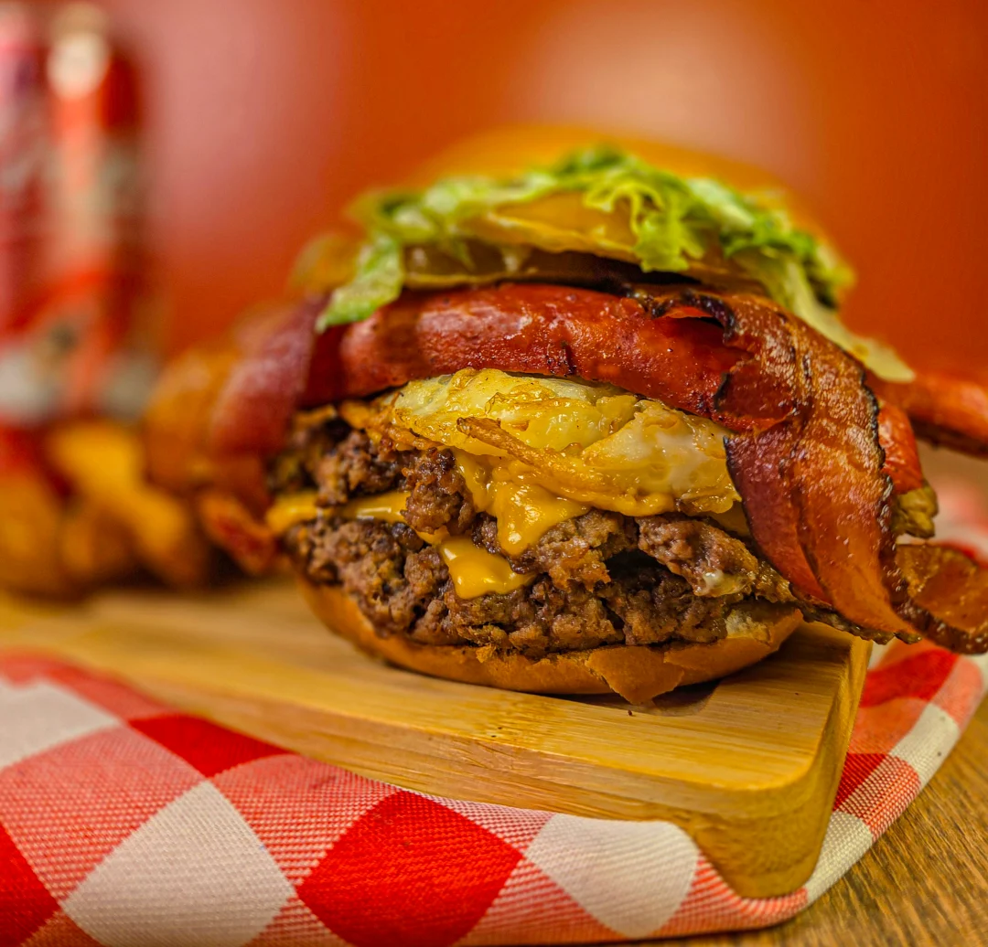 Clássico e irresistível! Pão brioche, burger 100g, queijo cheddar, bacon e aquela maionese segredo da casa.